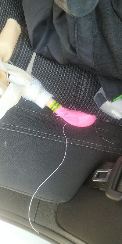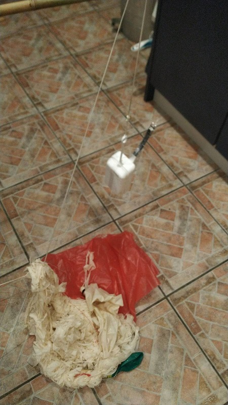 alles verknotet mit dem Ballonrest, kein Wunder dass die so schnell runterkam.