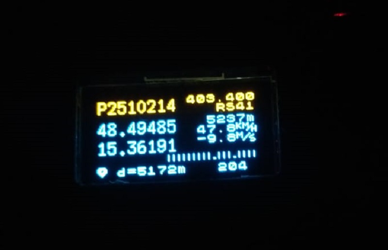 Das TTGO zeigte mir an, dass sie gerade auf mich zukommen sollte.