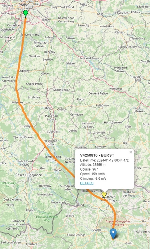 Als die Sonde bei 13000m wieder wendete wartete ich gerade in Pfarma und