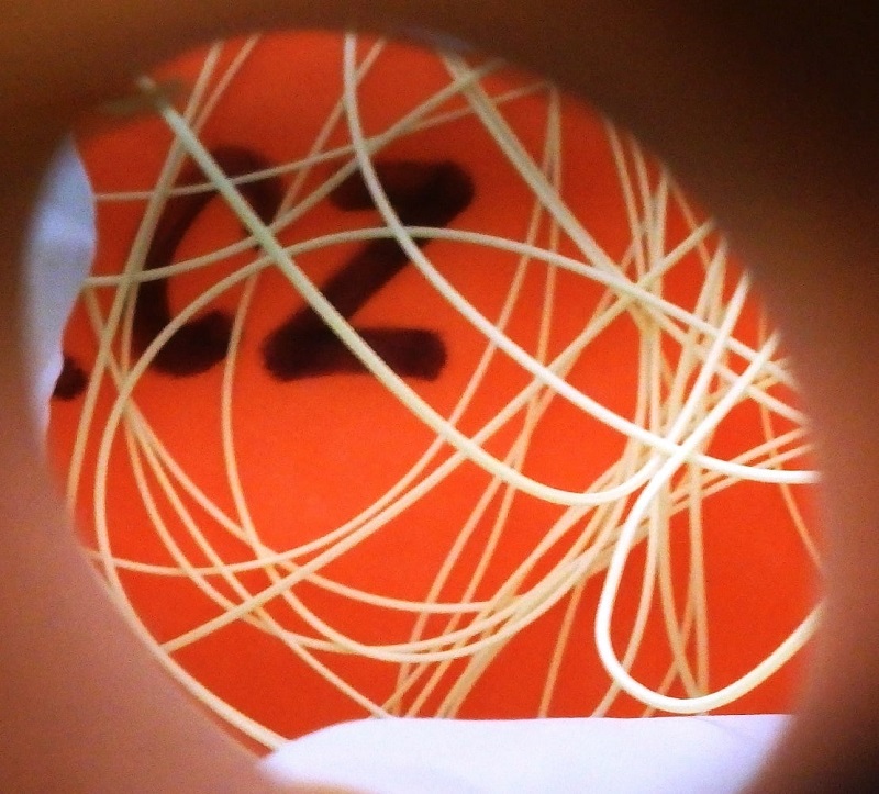 ein Stückchen Schnur. Beim Ziehen kam der Balonrest hervor, das andere Ende war lose.