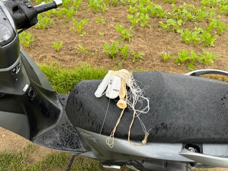 die Sonde schon im Garten des Nachbarn gefunden. Die Schnur samt Balonrest hing über das des nächsten Nachbarn.