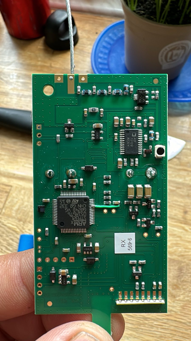 an der Rückseite mit dem grünen Draht ein Leiterbahnen Patch durchgeführt wurde.