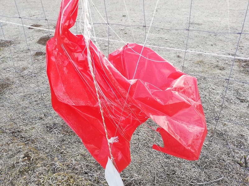 Da nur die Sonde und gleich daneben der Ballonstutzen mit der Schnur lag und kein Fallschirm
