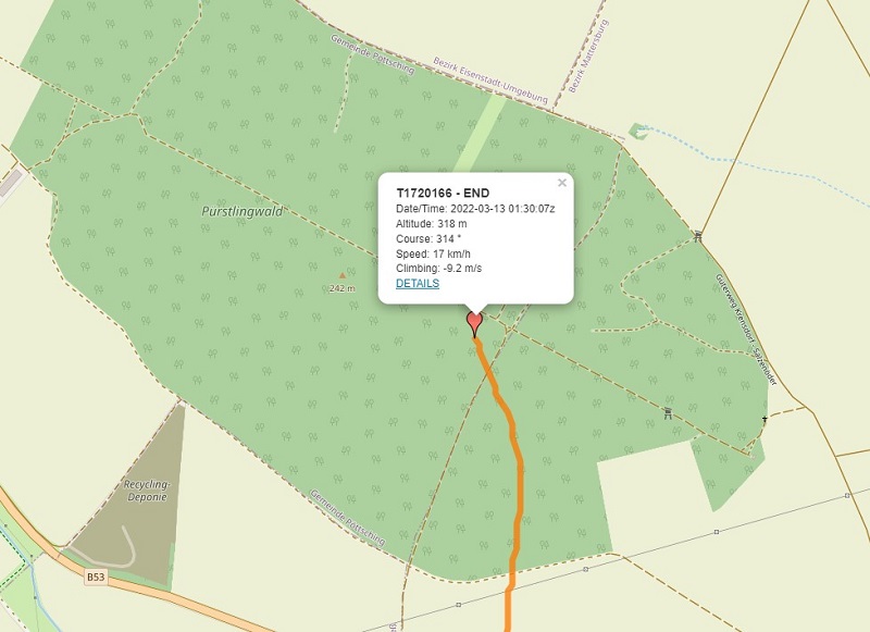 Waldgebiet und noch dazu gesperrtes Gelände an der letzten Position
