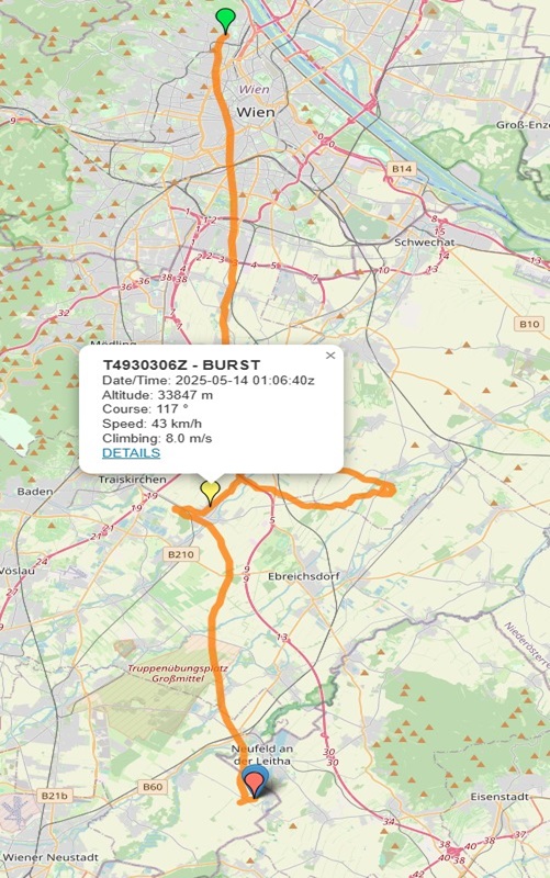 Die Wiener Mittagsonde landete westlich von Rust auf einer Wiese und OE4GKB Klaus