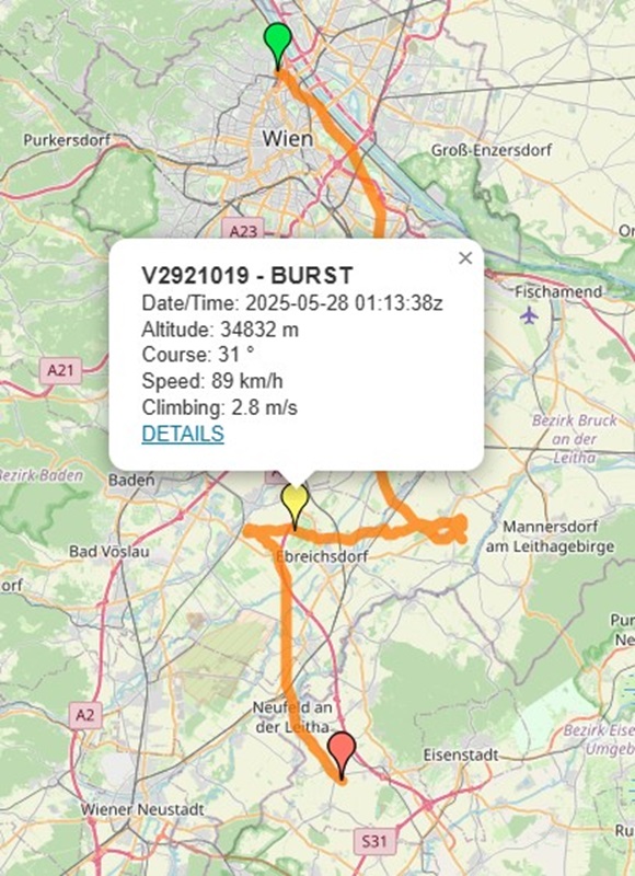 Wiener Mittagsonde mit 35.450m größter Höhe
