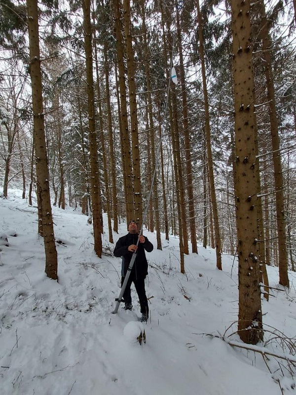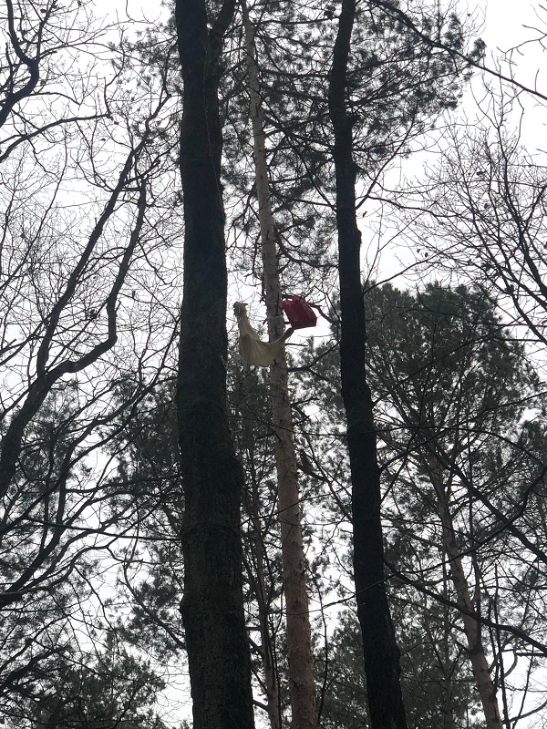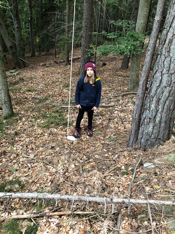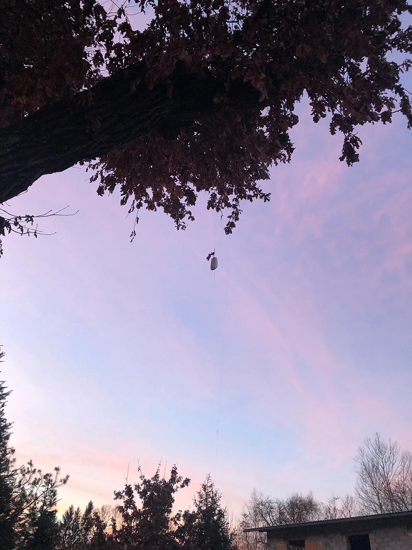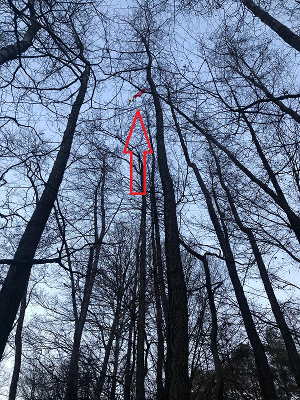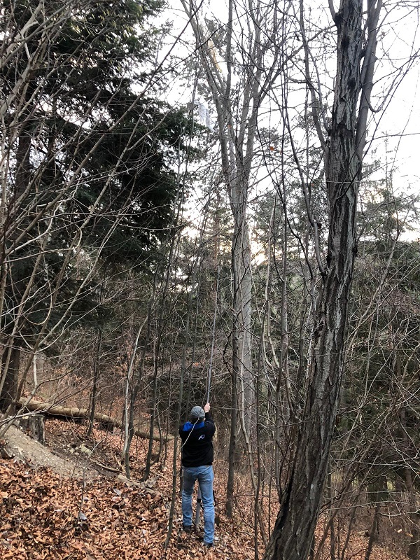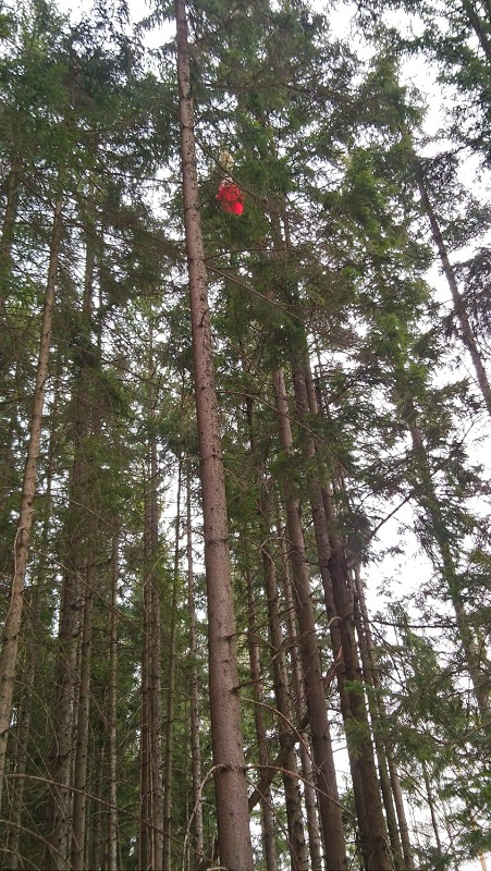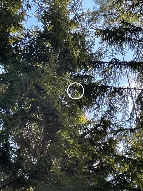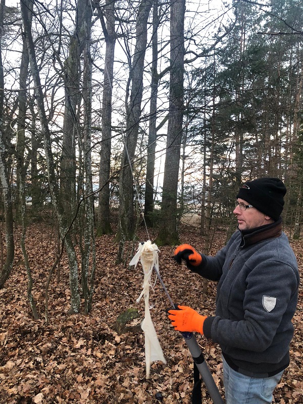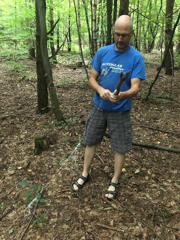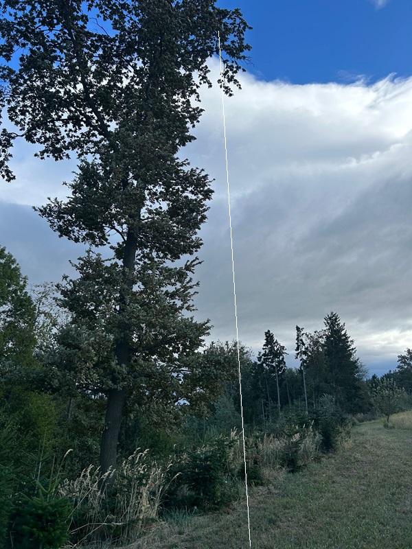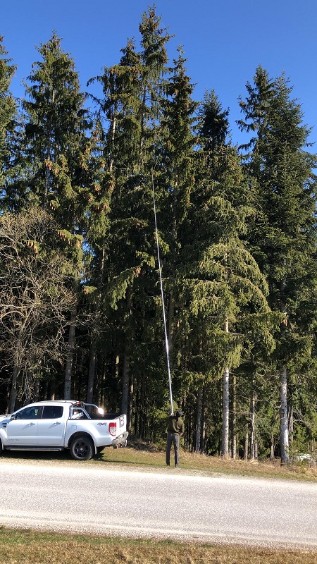 Sondenschnur über die Baumwipfel und Bergungsseil mit Teleskopmast.