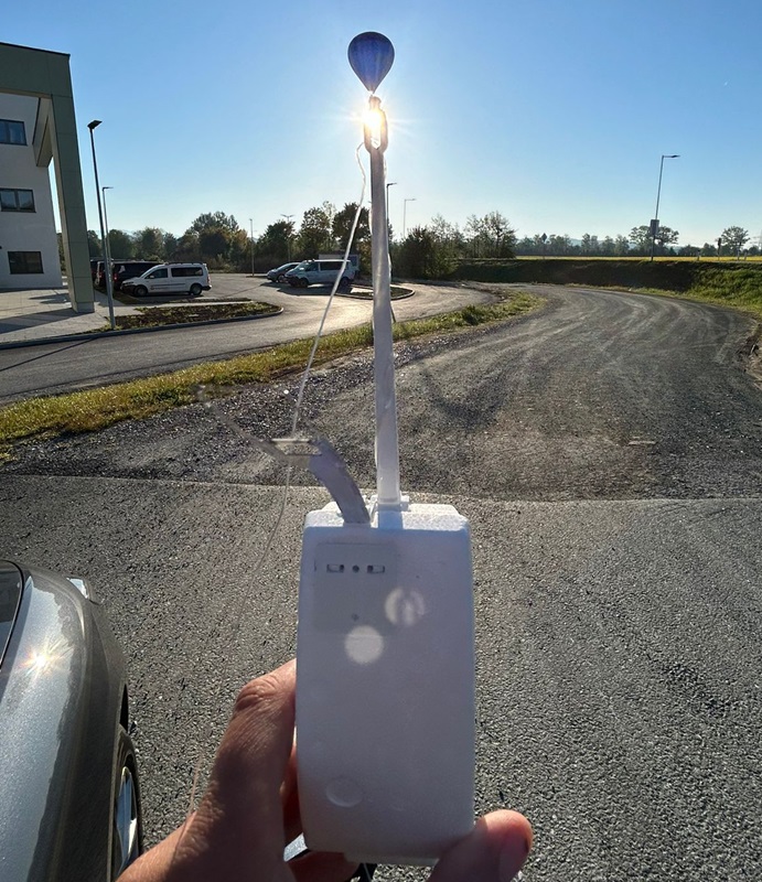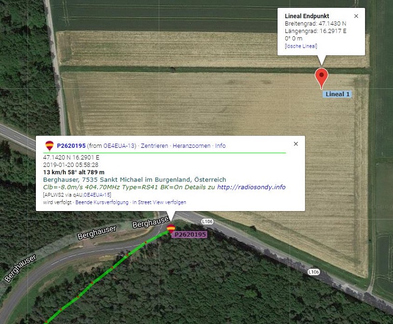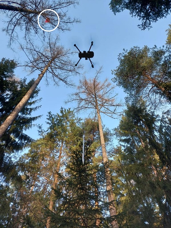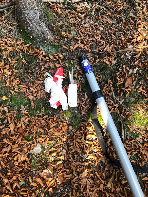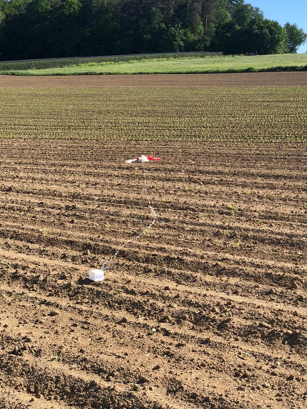 und die Drohne gelandet. Nun konnte mit dem Teleskopmast und der Leine an der Sondenschnur gezogen werden.
