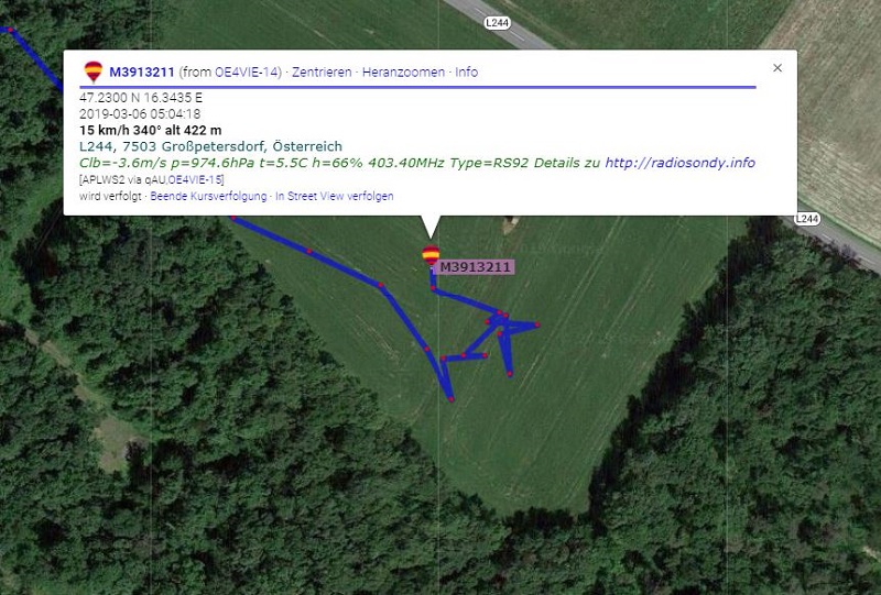 Nun ging es zu der M20 Sonde welche am 24. Februar Mittags geflogen war und nicht geborgen werden konnte.