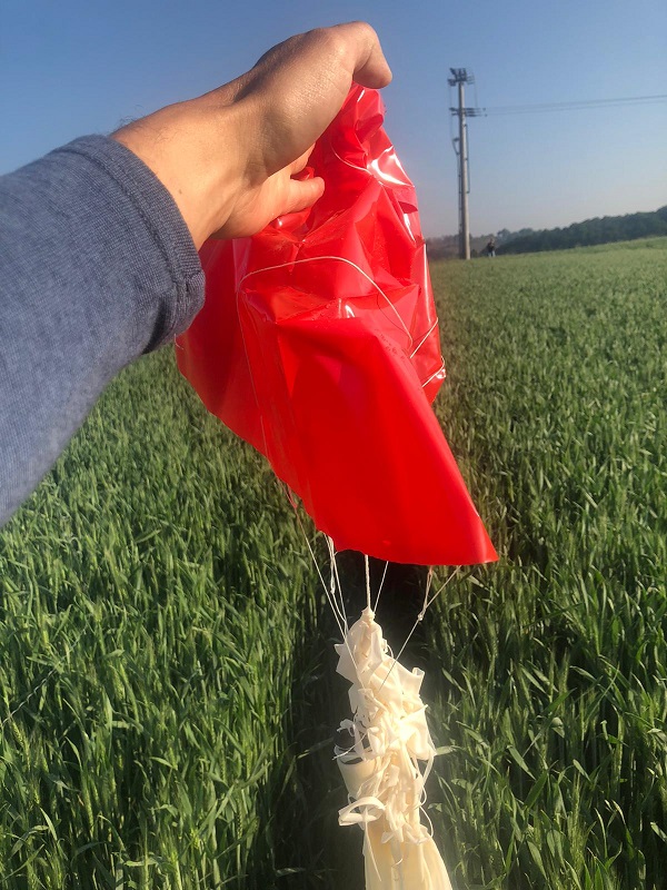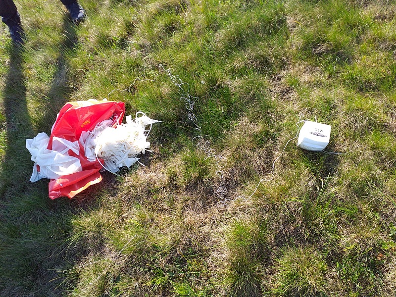 Der rote Schirm und die Sonde war dann schnell gefunden und die Drohne startklar gemacht.