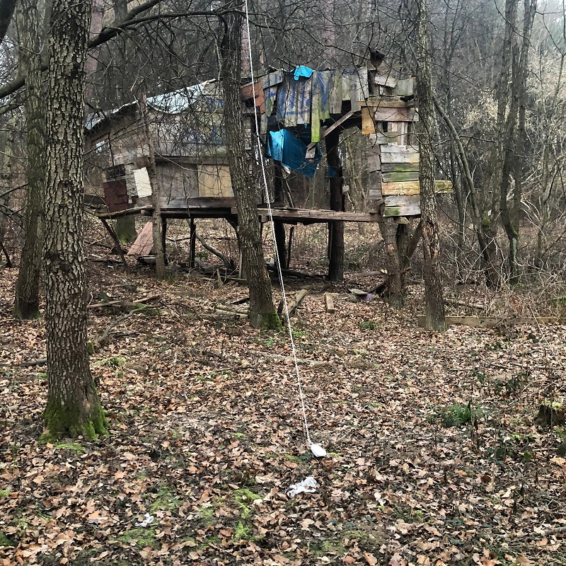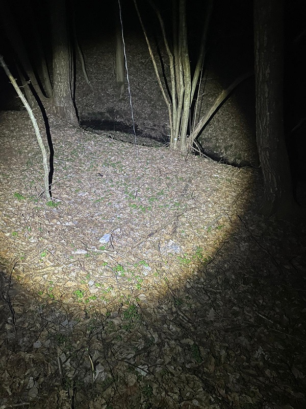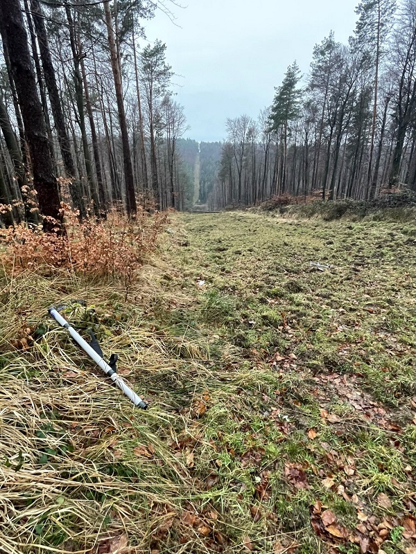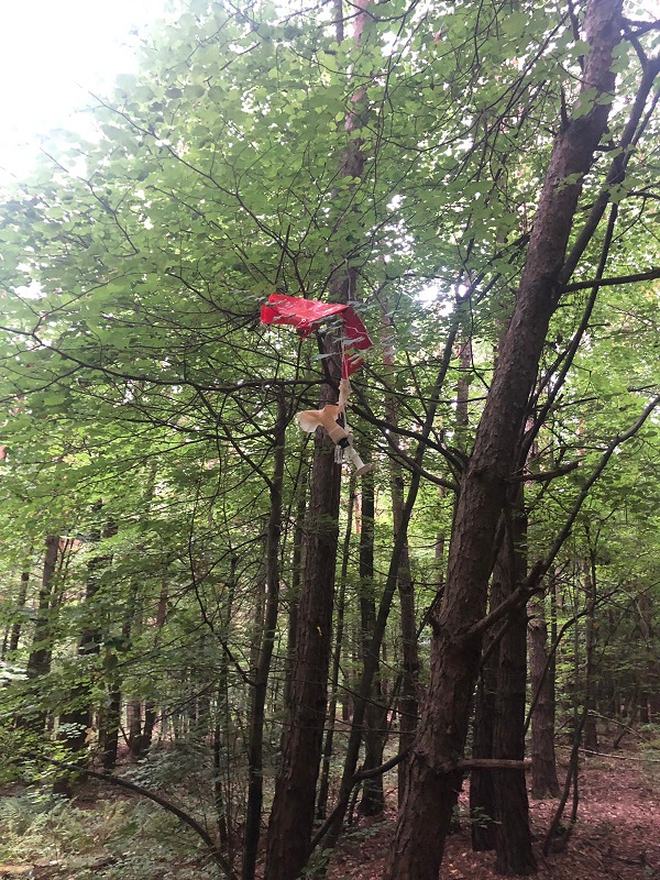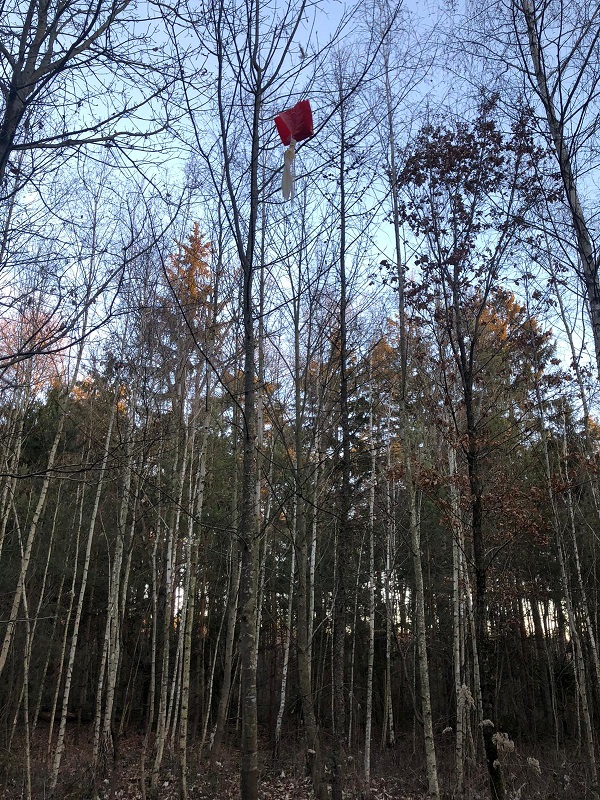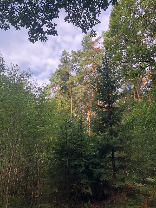 Da die Landekoordinaten bekannt waren, stand uns ein kleiner Fußmarsch durch den Wald bevor.