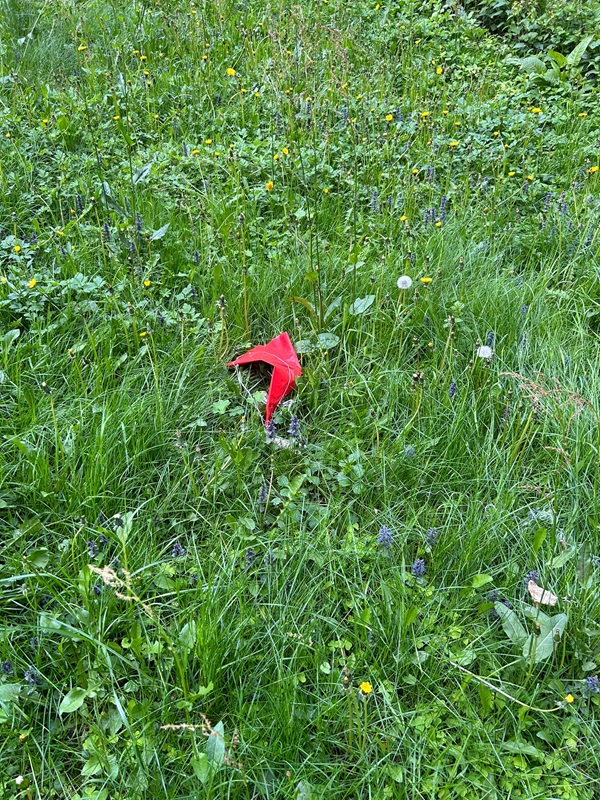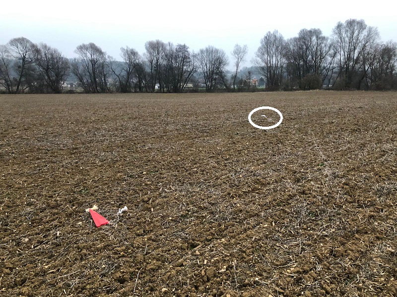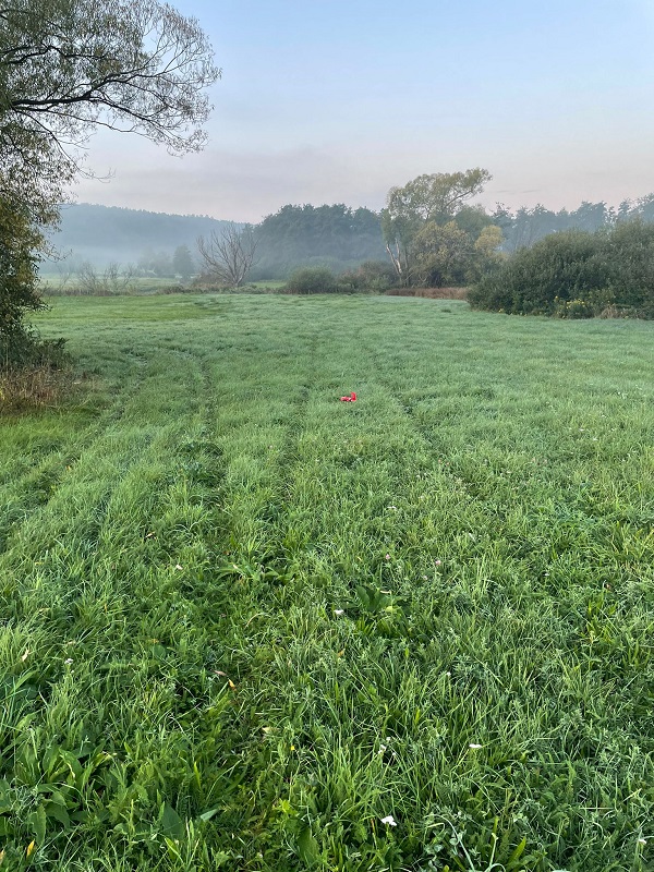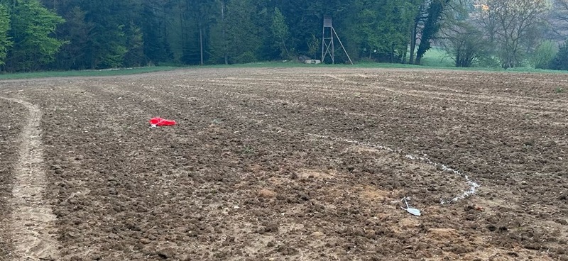 Die Sonde lag auch auf der Wiese auf der anderen Seite einer Baumgruppe.
