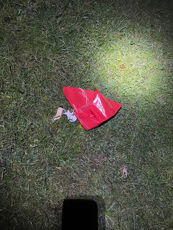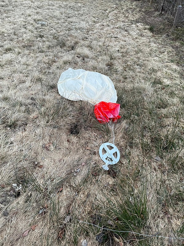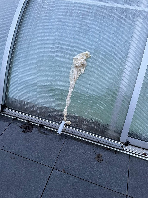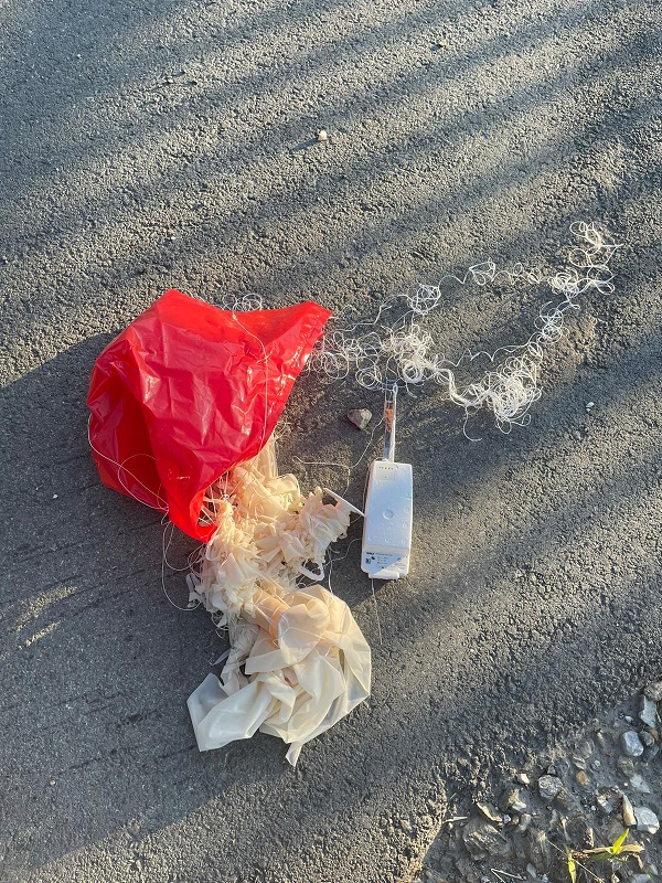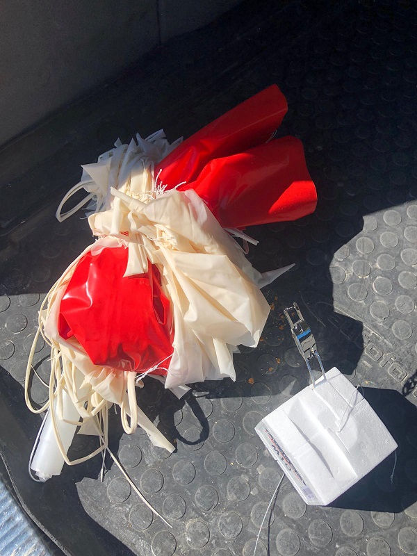Dann die Überraschung: Der Ballon war ganz geblieben und hatte nur ein Loch bekommen.