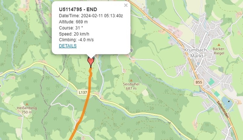 Da sie aber nur 21.130m Höhe erreichte, war sie nun bei uns gelandet.