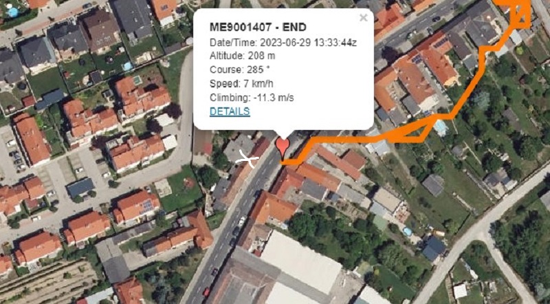 Flugstrecke mit 33.134m größter Höhe