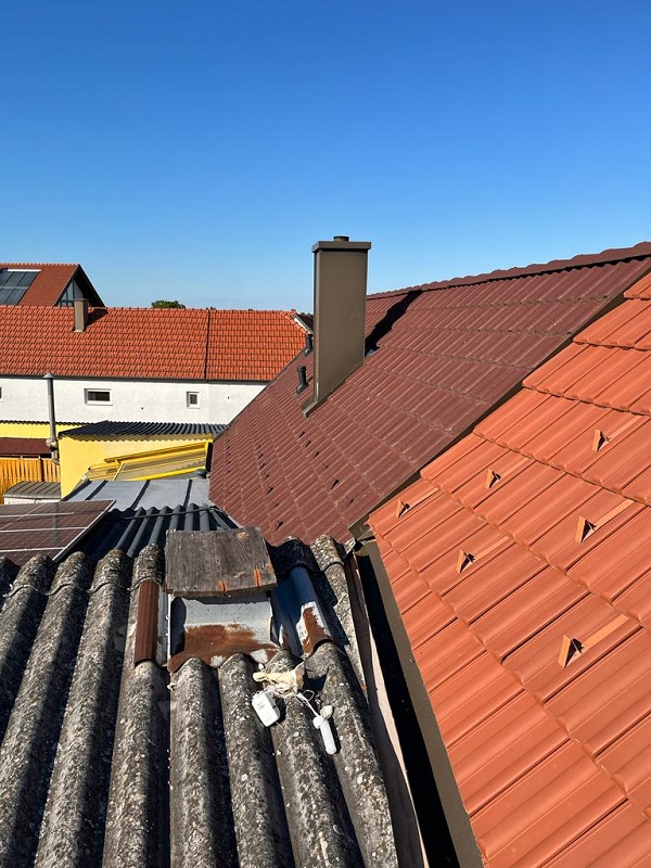 Alles auf einem Haufen am Dach gelandet