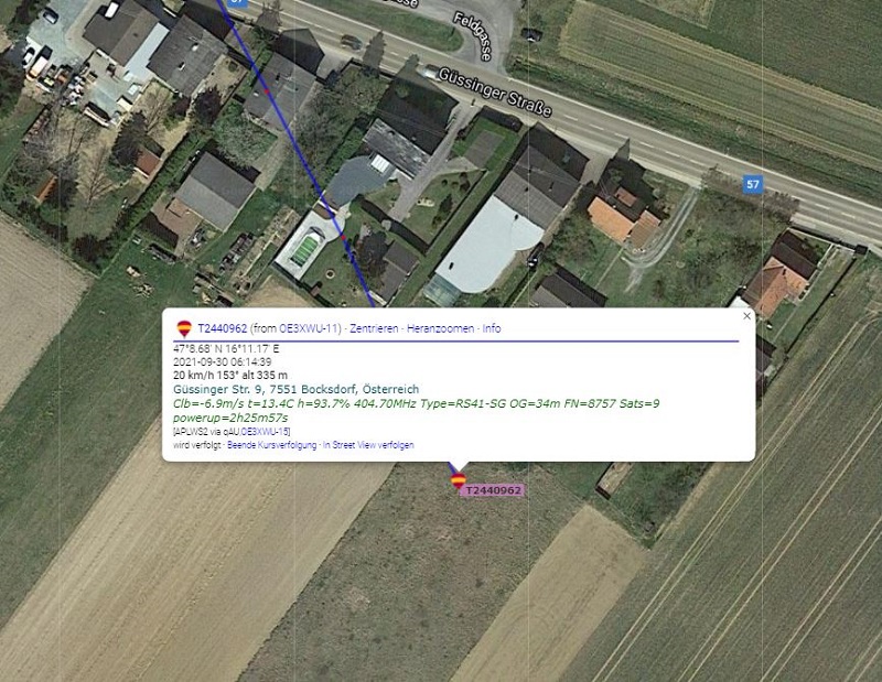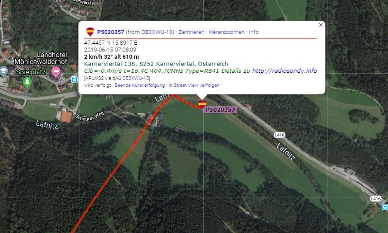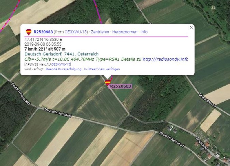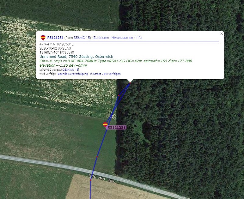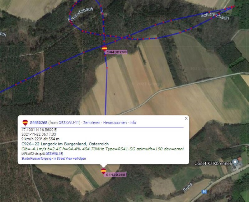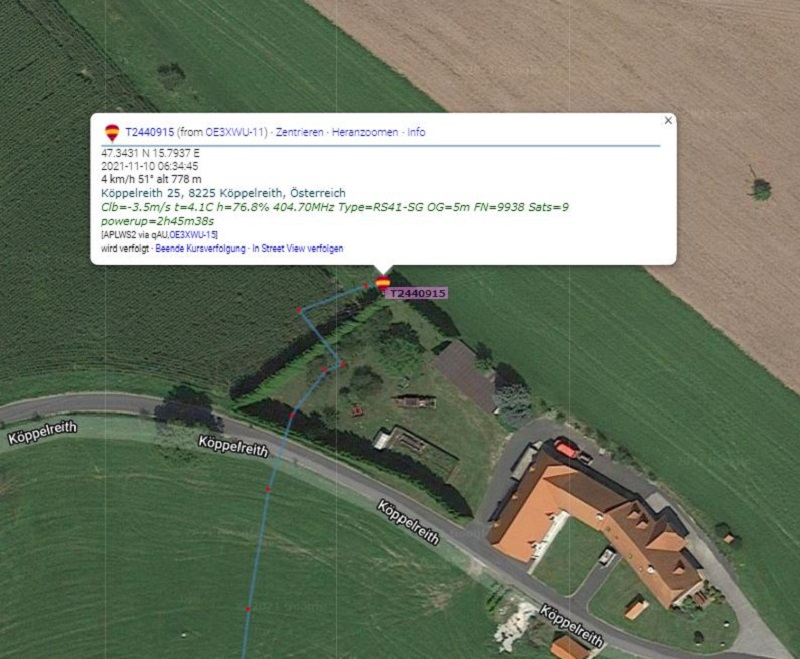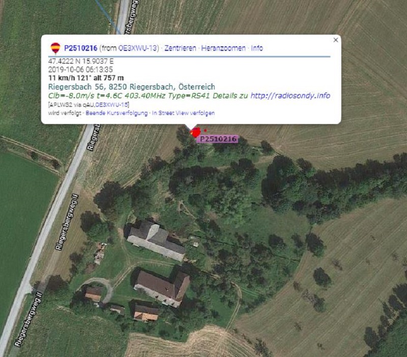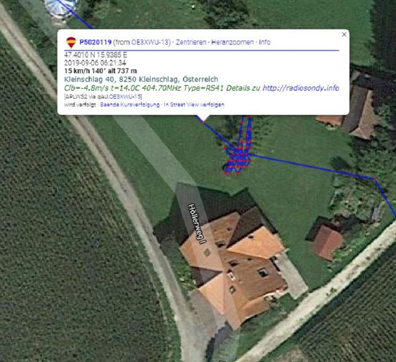 Fritz OE1FFS hatte mir inzwischen schon seine Schätzung der Landestelle