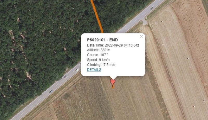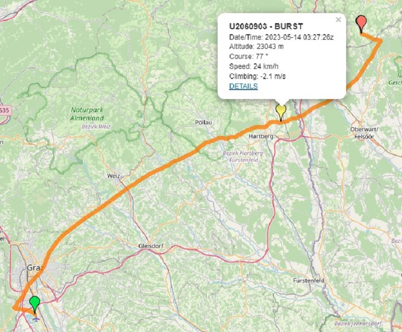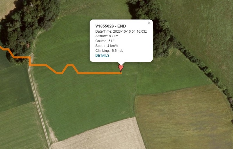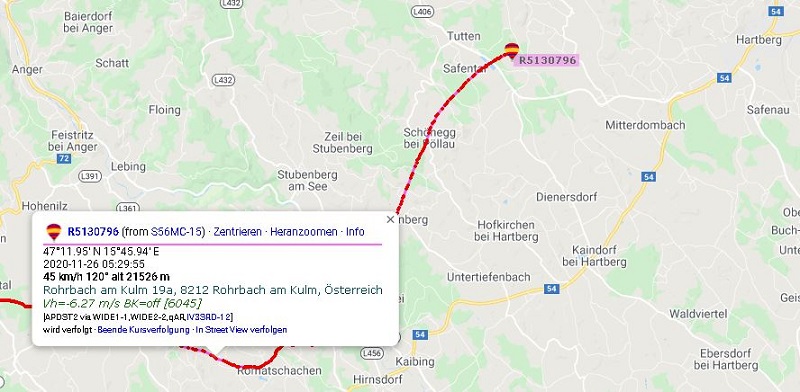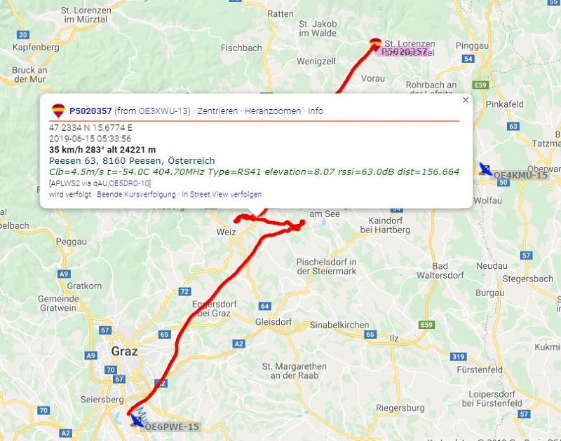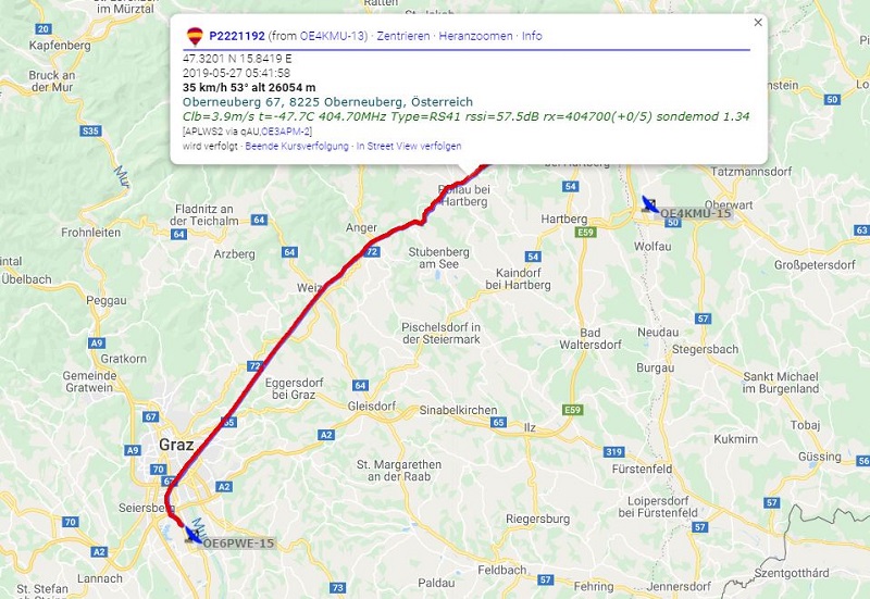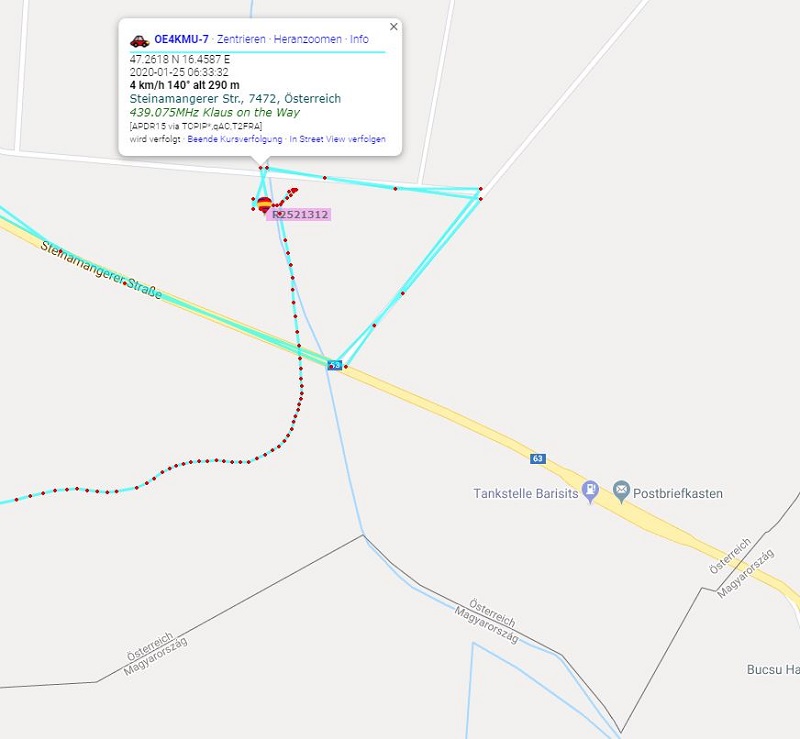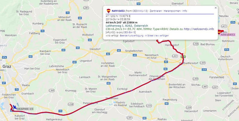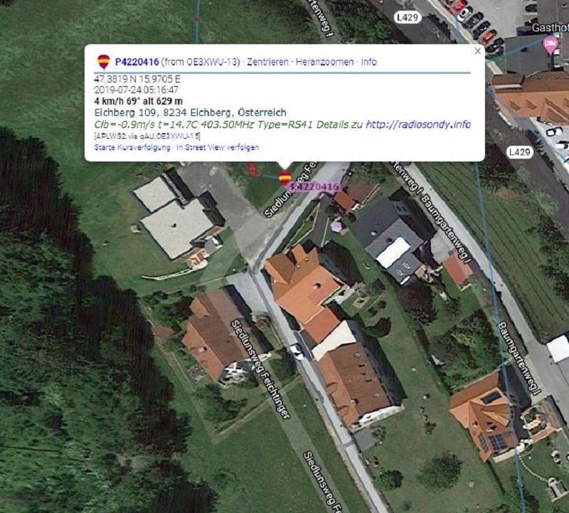 Fritz OE1FFS hatte mir inzwischen schon seine Schätzung der Landestelle