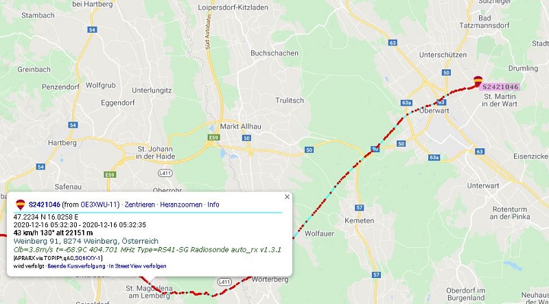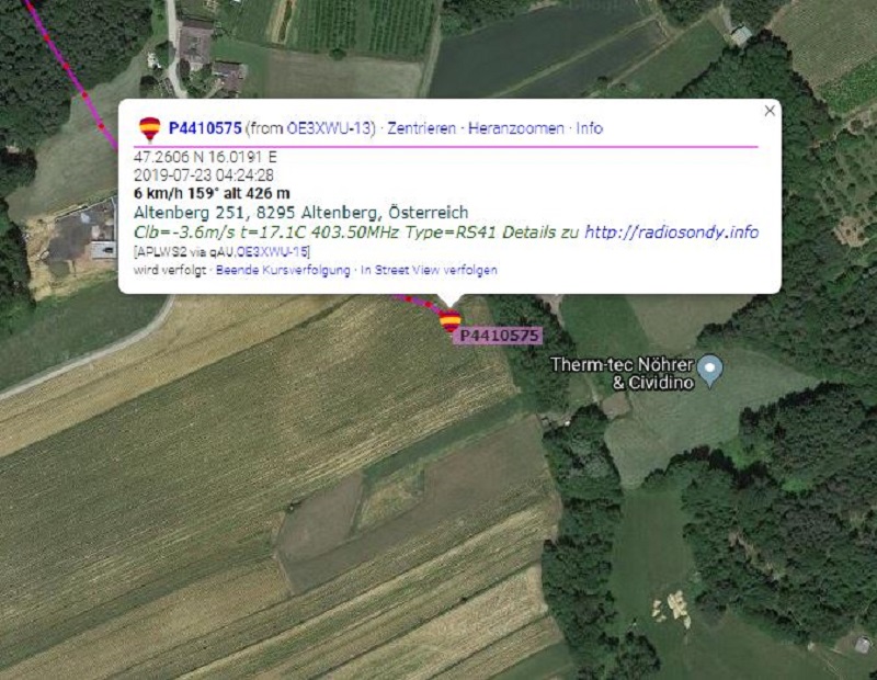 getrieben habe ich meinen täglichen Kontrollblick auf der Radiosonde