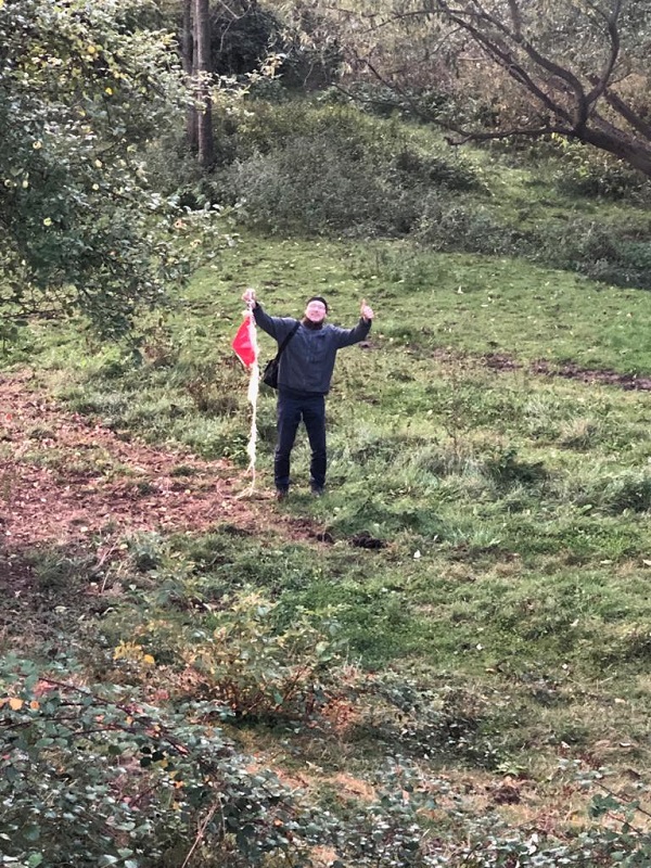 Nun rasch den Kollegen aus dem Auto "werfen" und ab in den Wald.