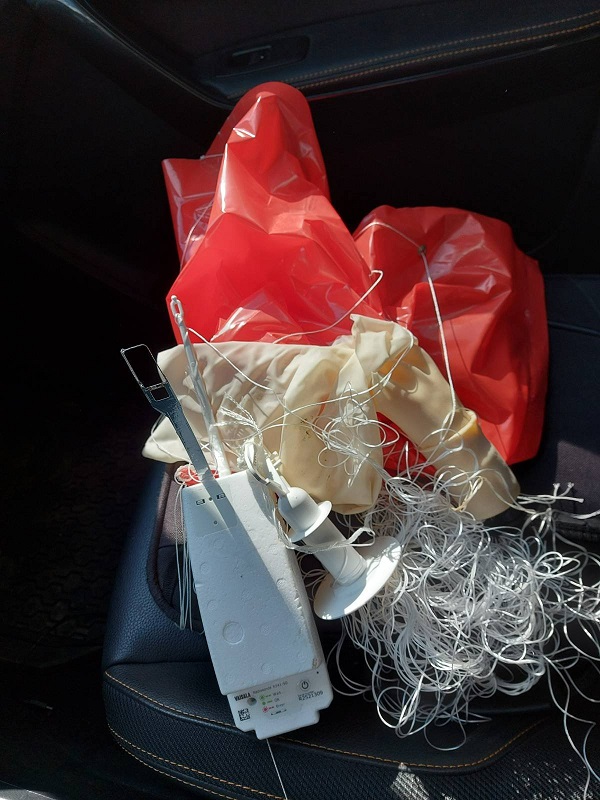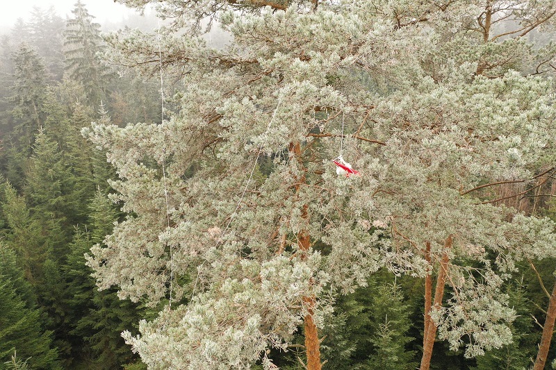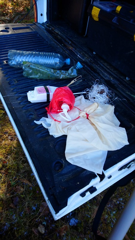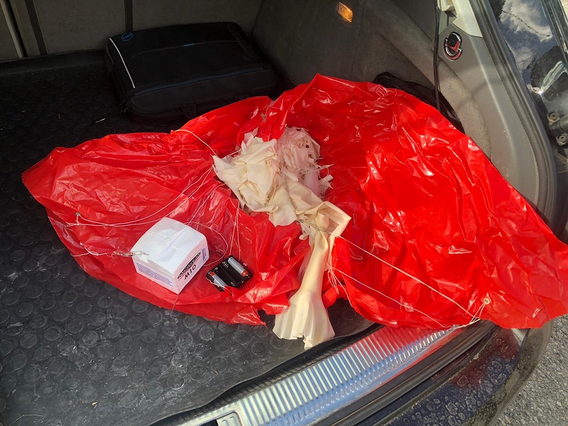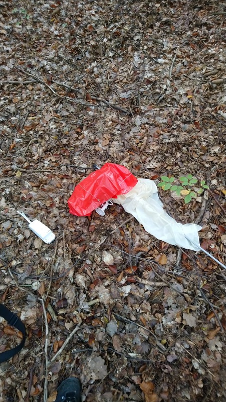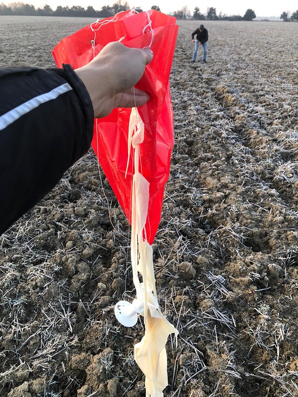 mitsamt Ballonresten weit oben in den Bäumen hängen. Aber von der Sonde