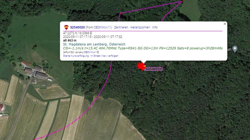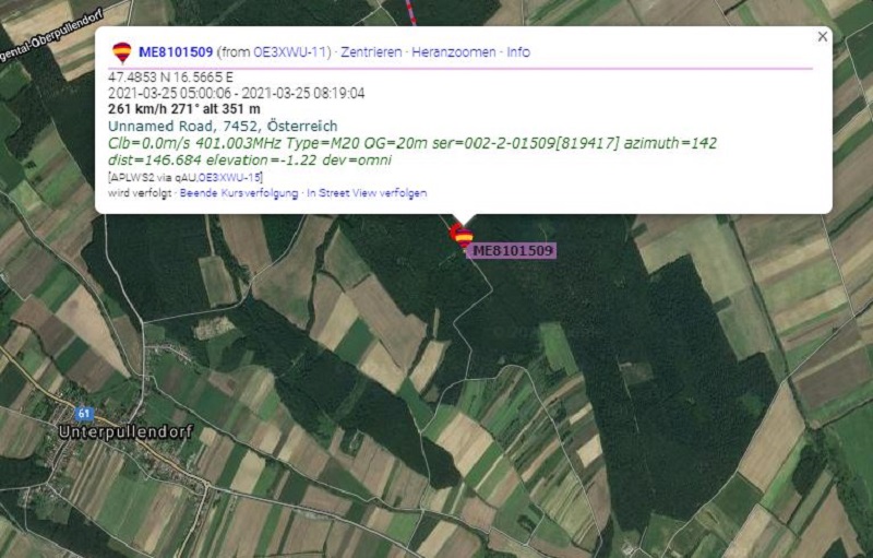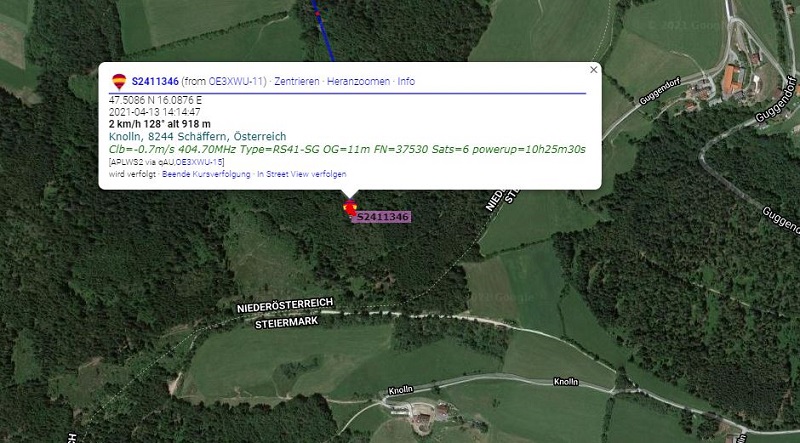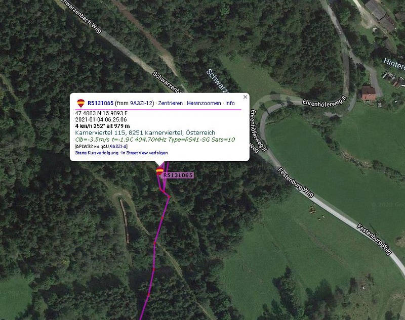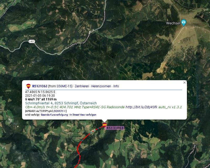 Während ich im Wald nach der Wiener Nachtsonde RS 41 SG geangelt habe,