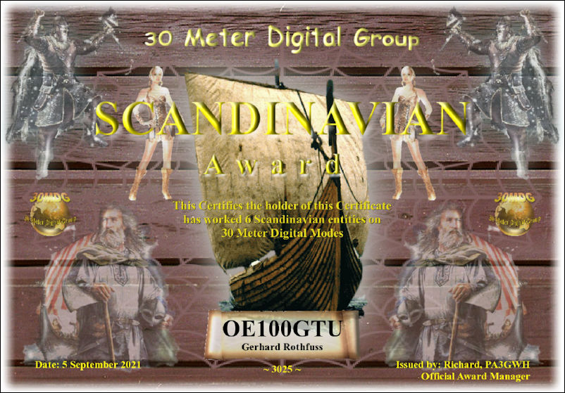 RULES Award Manager PA3GWH Scandinavian Award Work 6 unique Scandinavian Entities (countries) on 30 Meters Digital Modes.