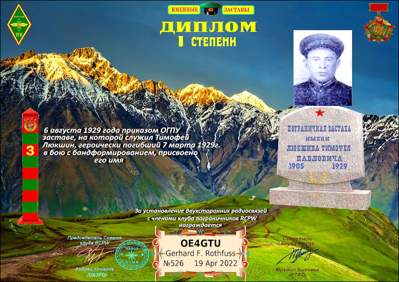 Das Diplom ist kostenlos und wird über die Website HAMLOG.RU elektronisch ausgestellt.