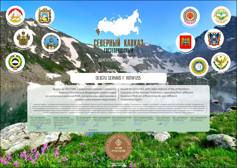 Das Diplom ist kostenlos und wird über die Website HAMLOG.RU elektronisch ausgestellt.