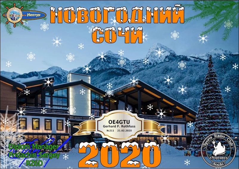 Kollektive Amateurfunker in Sotschi geben jeweils 50 Punkte (RY6AAG, RO7C, RV6BEM).Die QSOs werden vom 31.12.2019 bis zum 15.01.2020 gezählt.