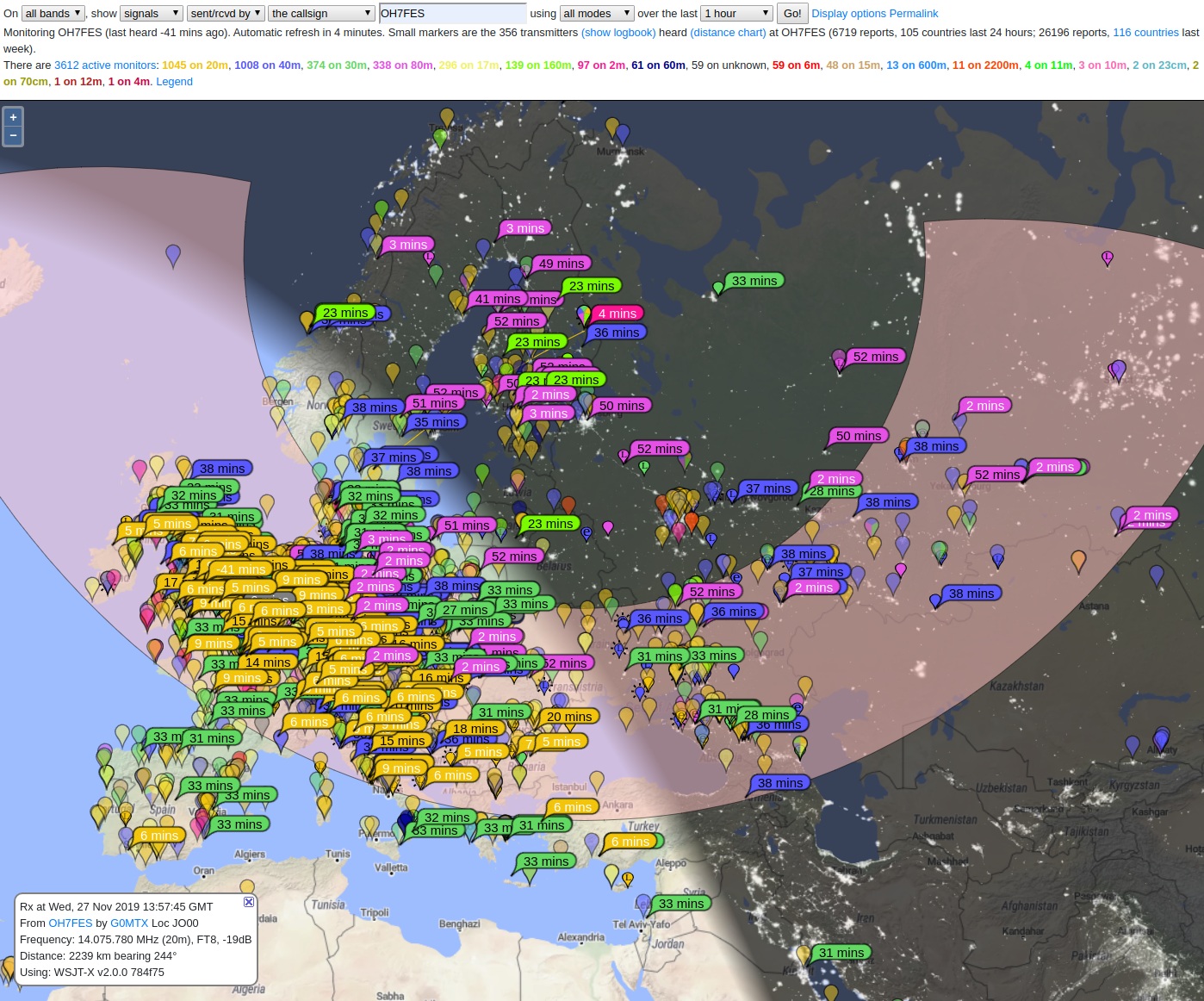 OH7FES FT-8 ja muut Digimodet kuuluvuus kartalla