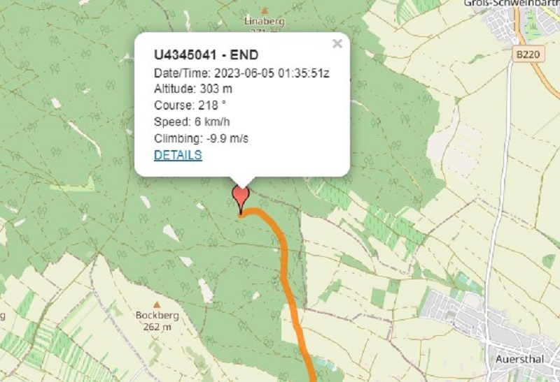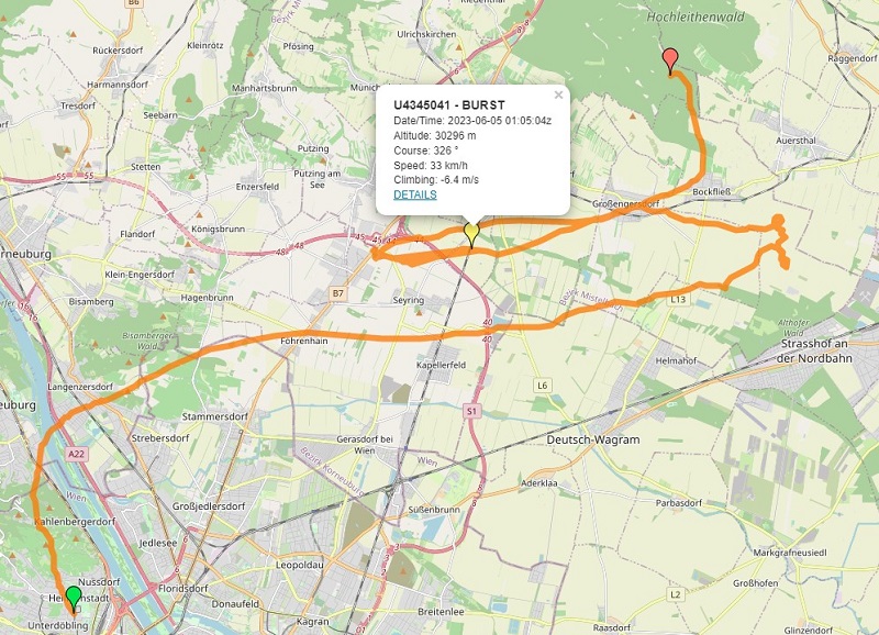 also das erste Mal alleine unterwegs. Die Sonde aus Wien war nur rund 5 Km von mir entfernt gelandet