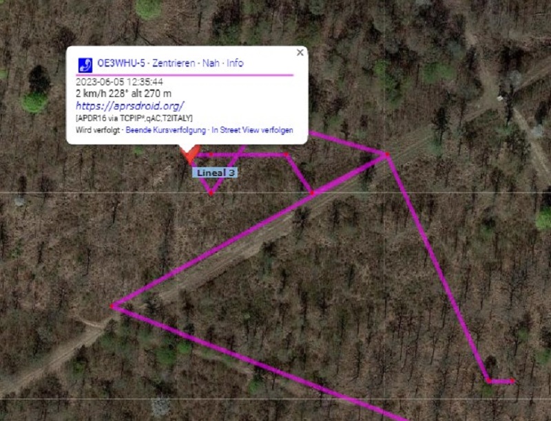 So marschierte ich systematisch also von der letzten Position der Sonde in der Luft auf APRS die Flugrichtung genauer ab und