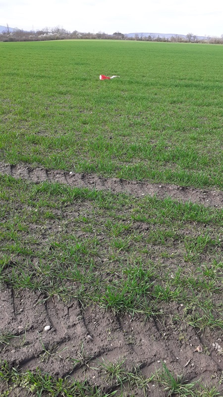 flach hingelegt. Da das Feld schon gut 20cm hoch mit der Saat bewachsen ist, habe ich vermutlich die falsche Spur am Vortag