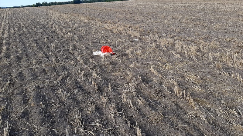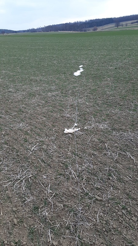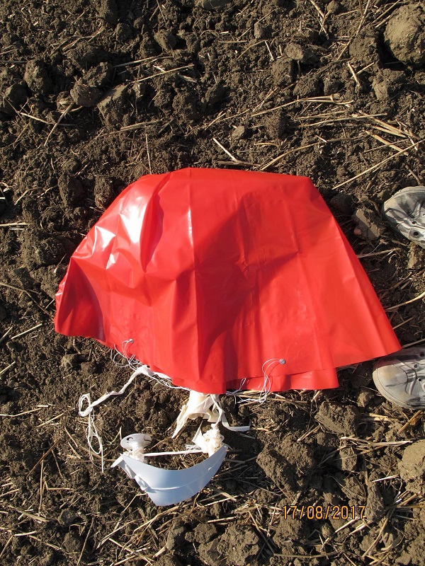 Da nur die Sonde und gleich daneben der Ballonstutzen mit der Schnur lag und kein Fallschirm