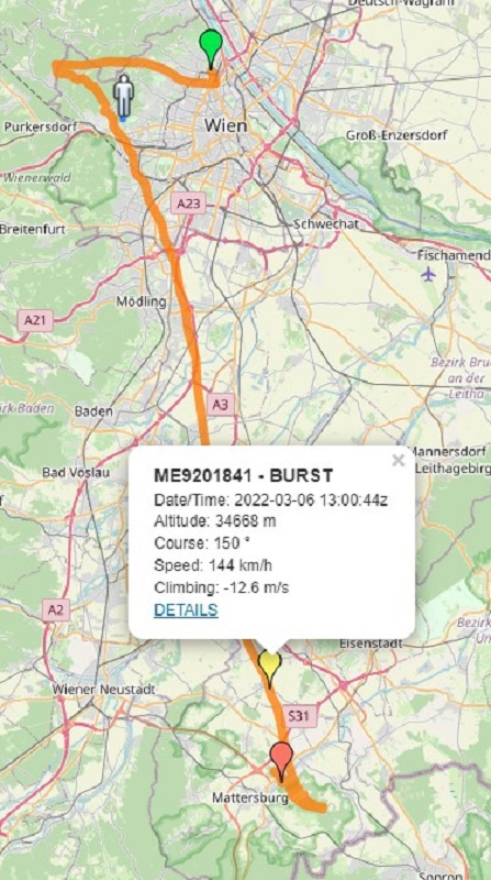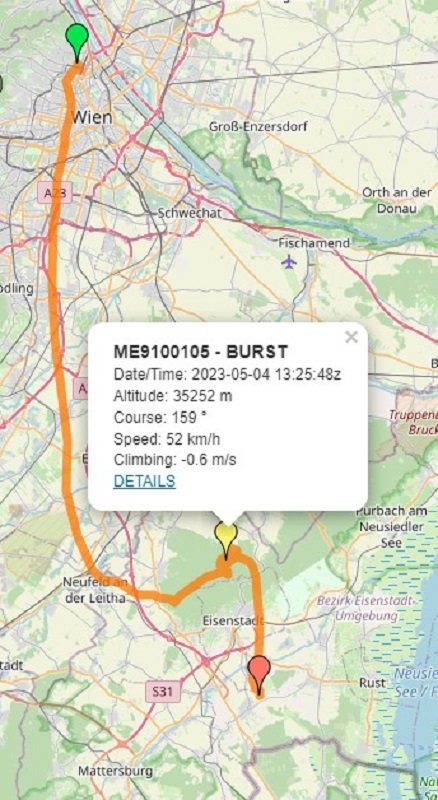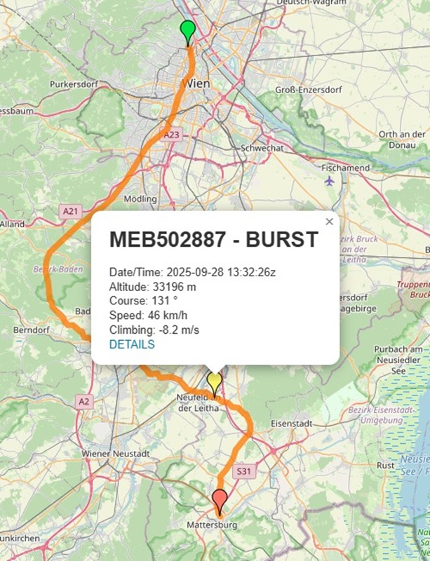 Wiener Mittagsonde mit 35.450m größter Höhe