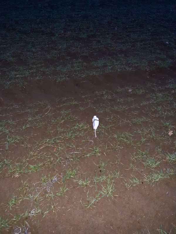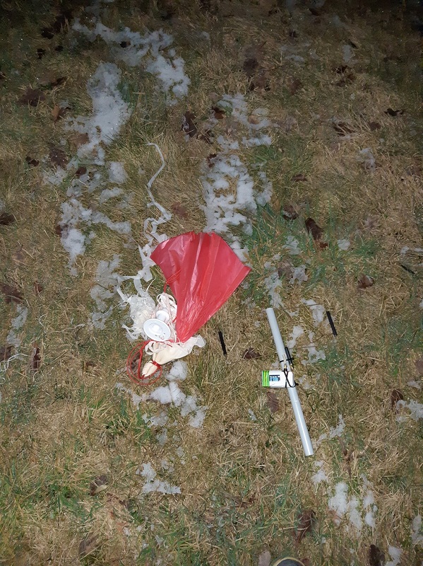 Sonde und Schirm im Licht der Taschenlampe gefunden
