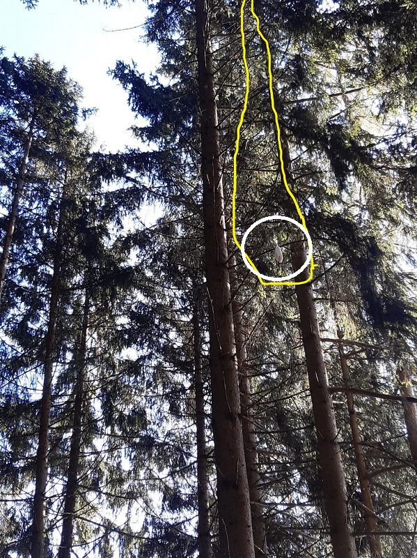 aber ca 20 Meter weiter blinzelte der rote Falschirm im Stirnlampenlicht.