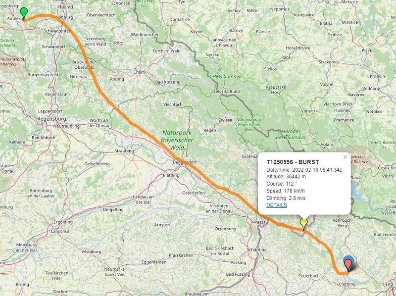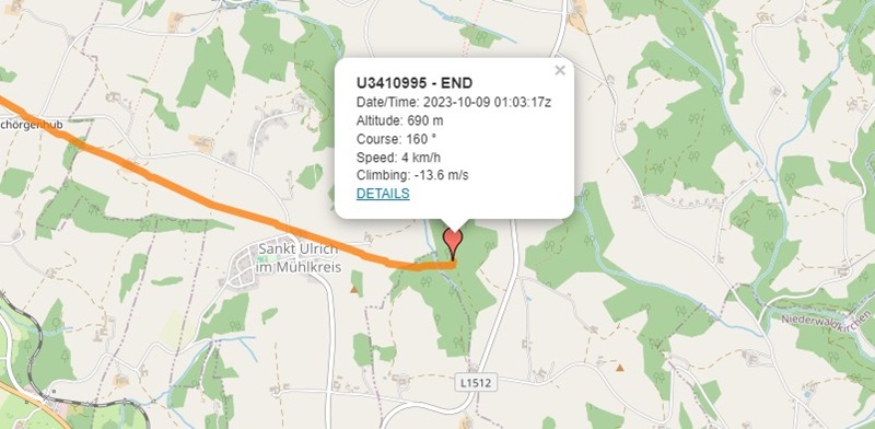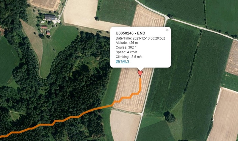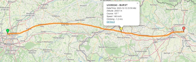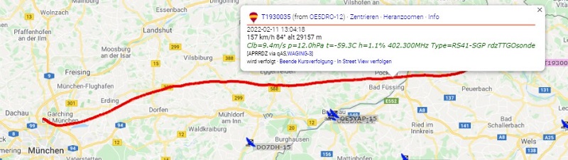 Den Anflug auf das Mühlviertel der Abendsonde aus Kümmersbruck (DE)
