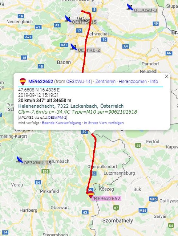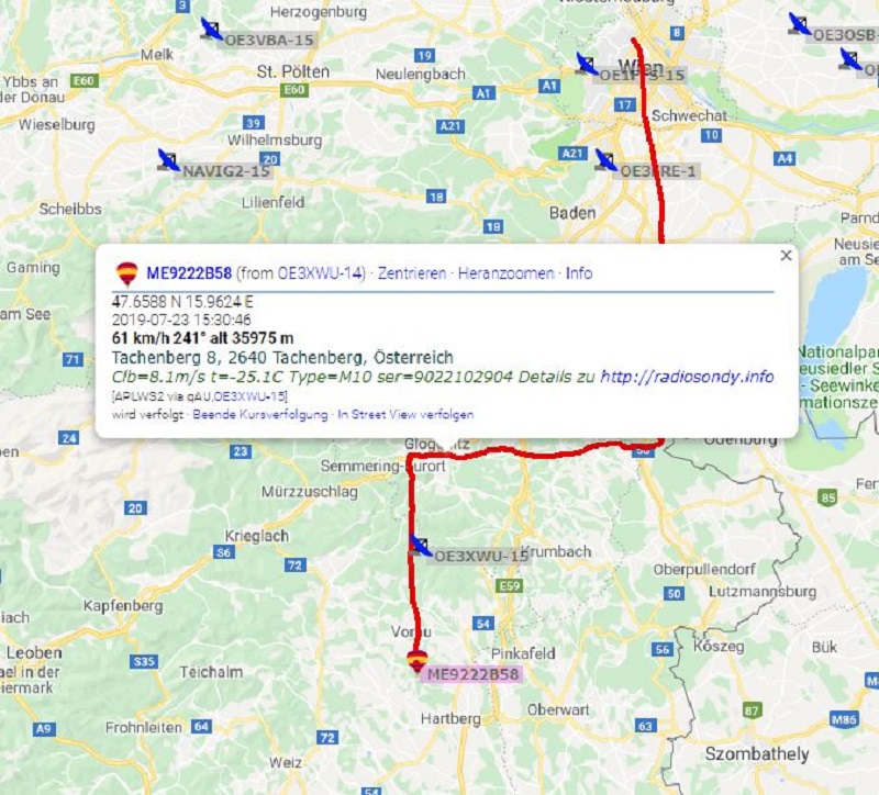 dass es NOCH eine Sonde in meine Nähe geschafft hätte! Und zwar eine M10, ebenfalls aus Wien - Die Mittagsonde war nicht weit entfernt inzwischen gelandet!