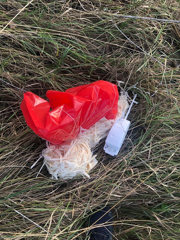 konnte ich die Sonde auch schon am Boden liegend vorfinden. Der ungeöffnete Schirm und Ballonreste hingen