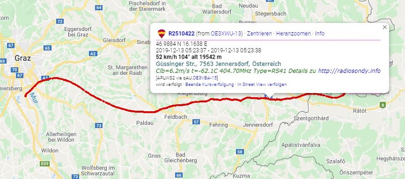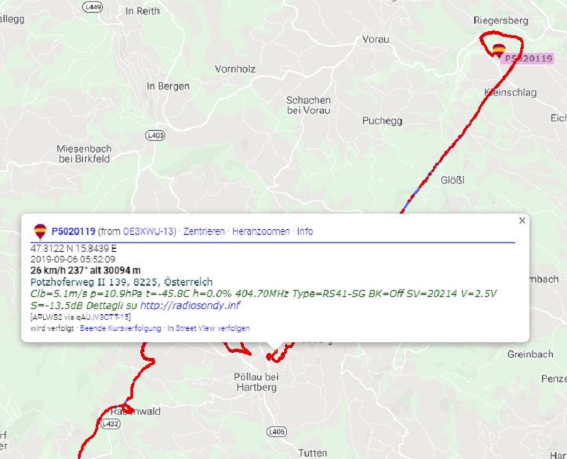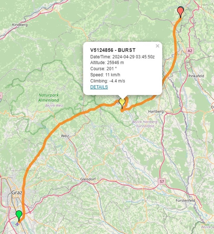 Die heutige Grazer Sonde wurde wieder einmal vom Dreamteam Roli - OE7300RP & Klaus OE4KMU eingesammelt.
