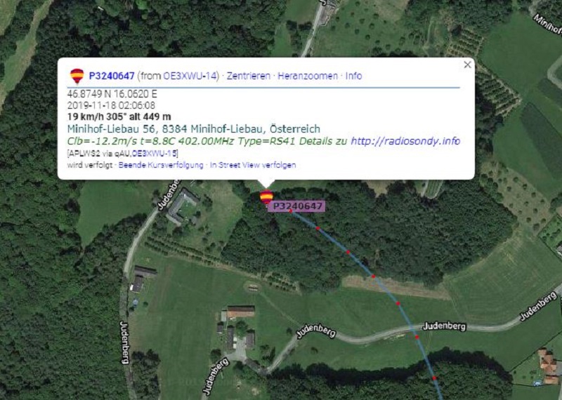 auf Radiosondy.info angemeldet hatten, zum Landeort.