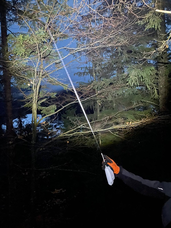 Sonde hängt frei und hoch oben - Kein Problem mit dem langen Bergemast
