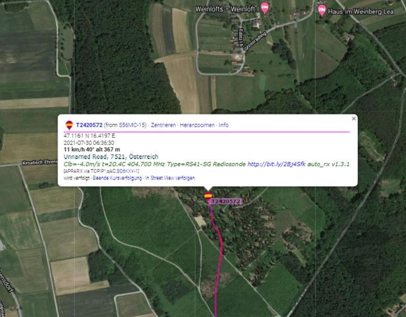 Während ich im Wald nach der Wiener Nachtsonde RS 41 SG geangelt habe, erhielt ich von meinem Kameraden Klaus die Info,