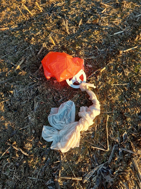 Sonde unbeschädigt und geöffneter Schirm mit Ballonresten