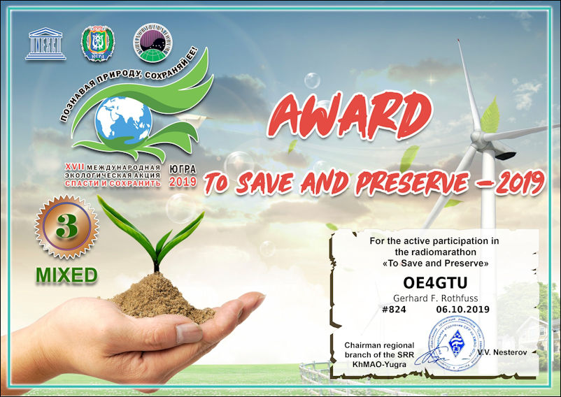 160 Punkte für ein Diplom des 1. Grades erreicht werden.Ein QSO mit der Hauptstation des Funkmarathons R17UGRA ist obligatorisch.