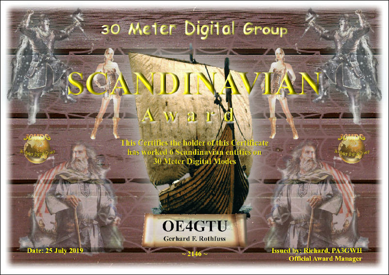 RULES Award Manager PA3GWH Scandinavian Award Work 6 unique Scandinavian Entities (countries) on 30 Meters Digital Modes.