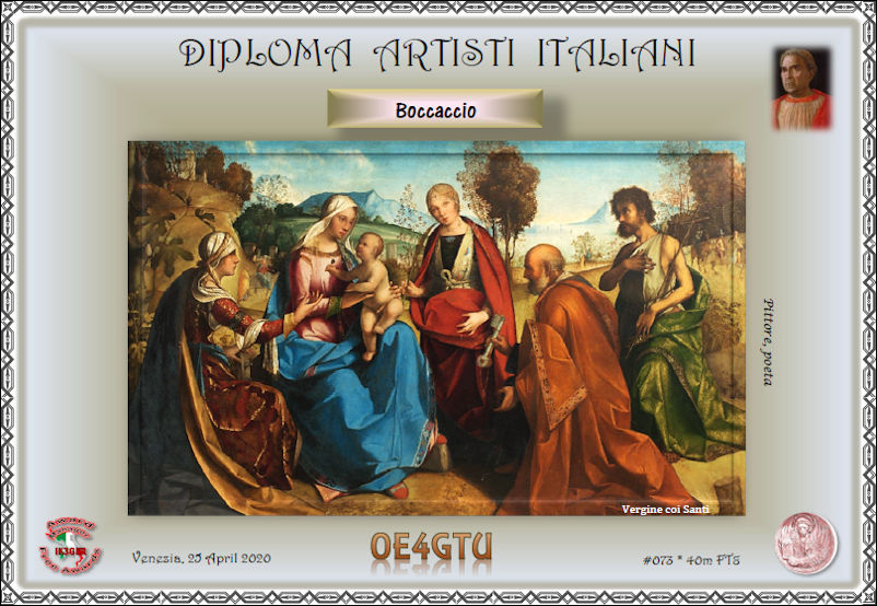 The award “DIPLOMA ARTISTI ITALIANI” consists of a set of 10 awards each one issued for a specific Italian artist of the past.