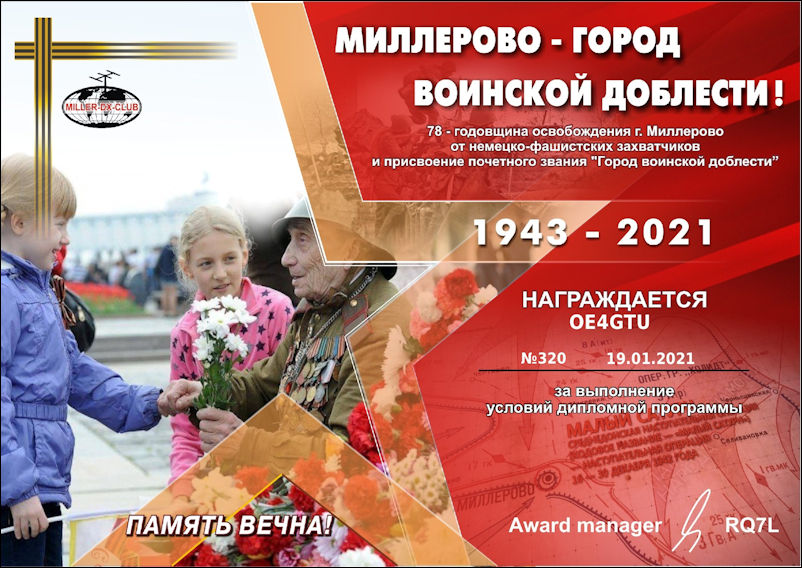 Das Diplom ist kostenlos und wird über die Website HAMLOG.RU elektronisch ausgestellt.